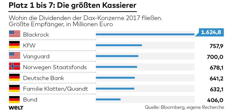 The discount fund management firm Vanguard will receive 700 million Euros, which is good news for me, since I am one of millions of Americans who own Vanguard funds. The reporter for Die Welt sees a danger from Vanguard and Blackrock having large holdings in German companies: