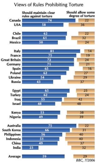 that’s very interesting! Iraq post Abu Ghraib: 42(!!)% not opposed to torture.. (opposed to 25% in egypt) of course for some US-republicans the mere viewing of “24” already counts as being pro torture.