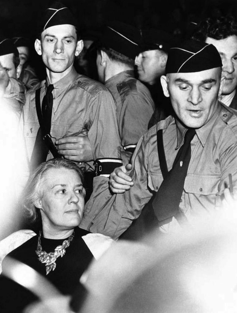 For her blasphemy Goebbels had Dorothy Thompson expelled from the Vaterland. Inside the Garden on the night of 1939, Thompson found the whole Nazi pageantry ridiculous, and as she listened to the speech of Bund-Leader Fritz Kuhn she burst into hysterical laughter. Kuhn had his Nazi goons remove her from the event. Fortunately, Thompson wasn't roughed up like Isaodore Greenbaum: