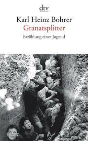 I was somewhat disappointed by Karl Heinz Bohrer's much-praised memoir Granatsplitter. Bohrer is a highly-respected literary scholar and former editor of the intellectual review Merkur. Granatsplitter covers the years 1939 to 1953. Bohrer was just seven years-old when war broke out, and the first half of the book is a highly engaging description of wartime Cologne through the eyes of a young boy. Bohrer uses the third person "er" or "der Junge" in referring to himself throughout, providing some measure of objectivity or distance. During the firebombing of Cologne, young Bohrer and his playmates would gather fragments from flak (Granatsplitter) found on the street. The boys cherished these fragments ("Die Granatsplitter waren das Schönste, was man sich ausdenken konnte") and Bohrer kept them as a kind of talisman until young adulthood. What's interesting is that even Bohrer's young classmates had an inkling of the atrocities committed by the Nazis: