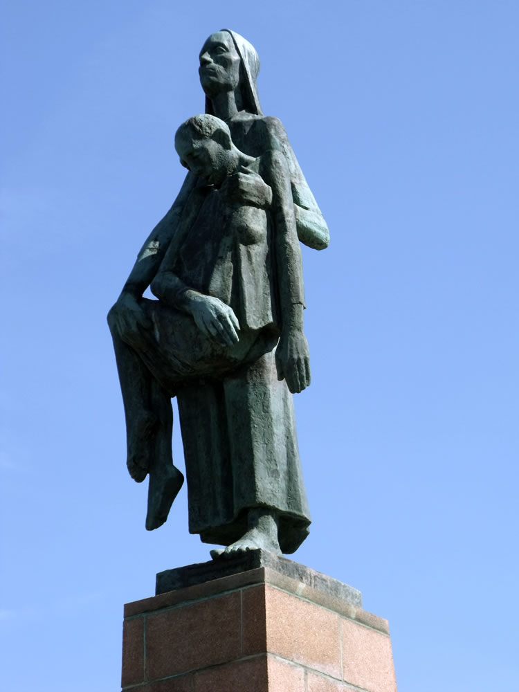 Today there is a statue depicting Olga Benário holding up an emaciated inmate ("die Tragende" – "the one who carries") standing at the site of the Ravensbrück Camp.
