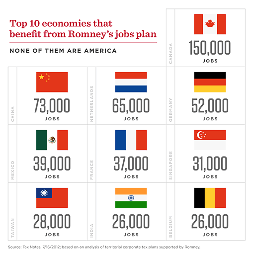 Now, with his tax plan, Romney hopes to accelerate overseas job creation by eliminating US tax on foreign profits. This would create 800.000 overseas jobs, with Germany as a big benificiary, given the substantial US multinational presence there.