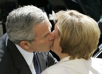 It was all kisses, barbecued pig, and platitudes with Bush’s brief visit to Stralsund. Bush is ecstatic to have such a good friend in Angela.