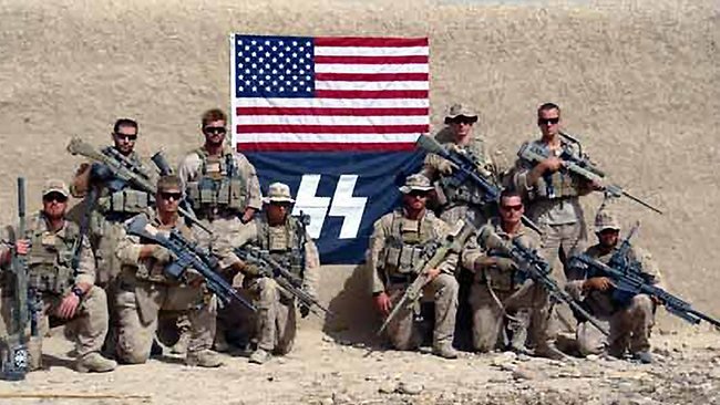 The US military is full damage-control mode after a photo surfaced the shows sharpshooters of the Marine Corps along with the a dreaded symbol of Nazi tyranny and mass murder