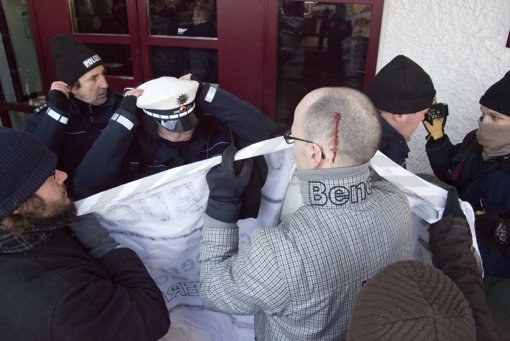 At least one of the protesters received an injury to his head. Congratulations to No Racism Stuttgart for not allowing Ulfkotte and the Kopp Verlag to put on their Hatefest unchallenged.